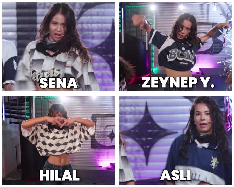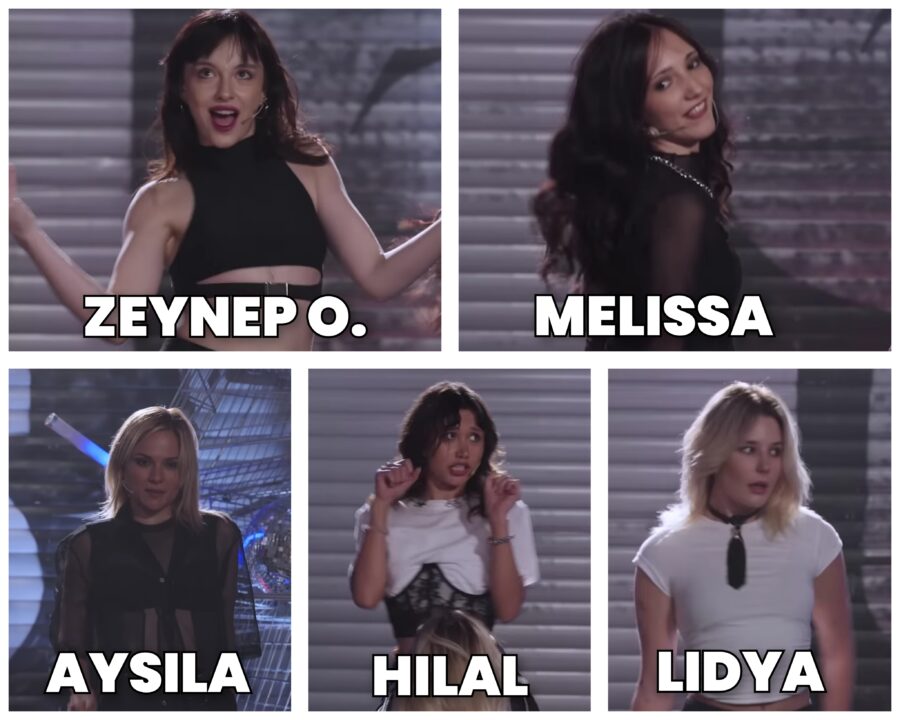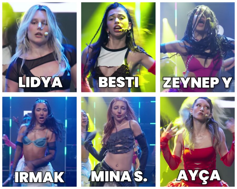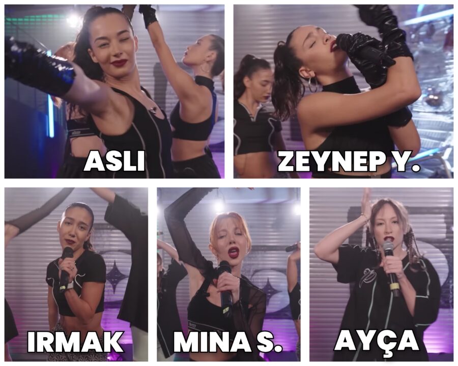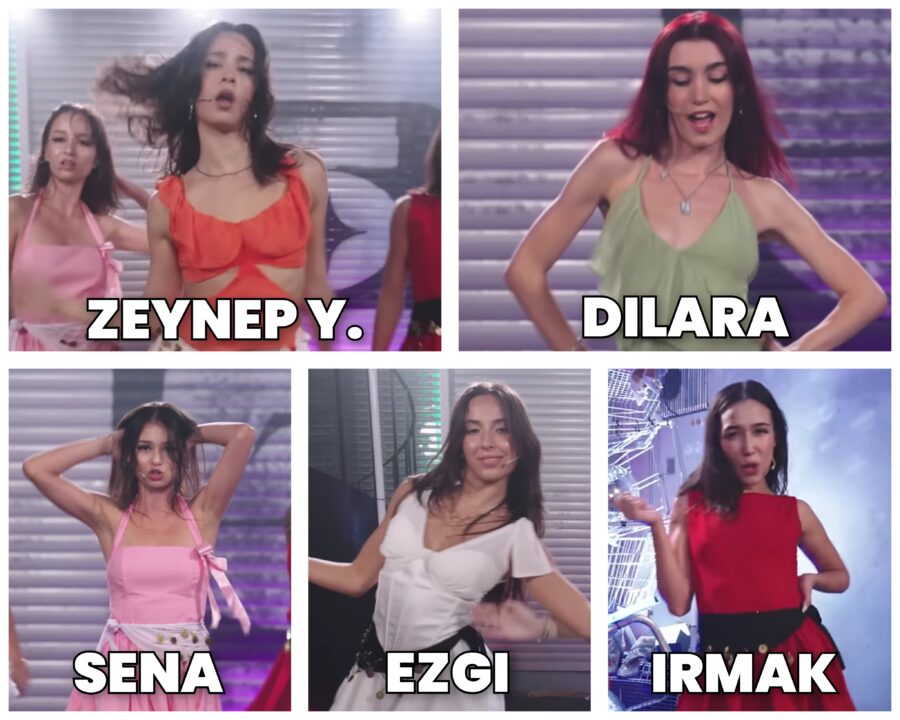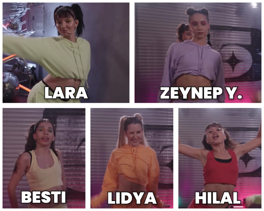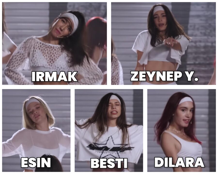 *Ayça was expected to be in the first group, but due to a sudden recurrence of her back health problem before the performance, she could not perform and the first group performed with five members.*