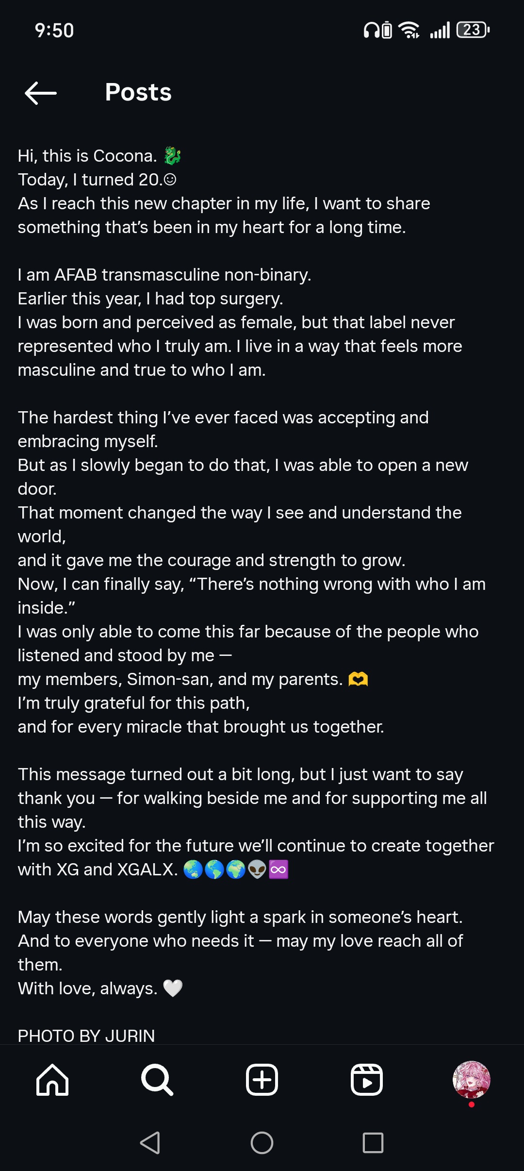 – On December 6, 2025, Cocona revealed on XG’s Instagram that they had undergone top surgery earlier this year and that they are AFAB transmasculine non-binary [X].