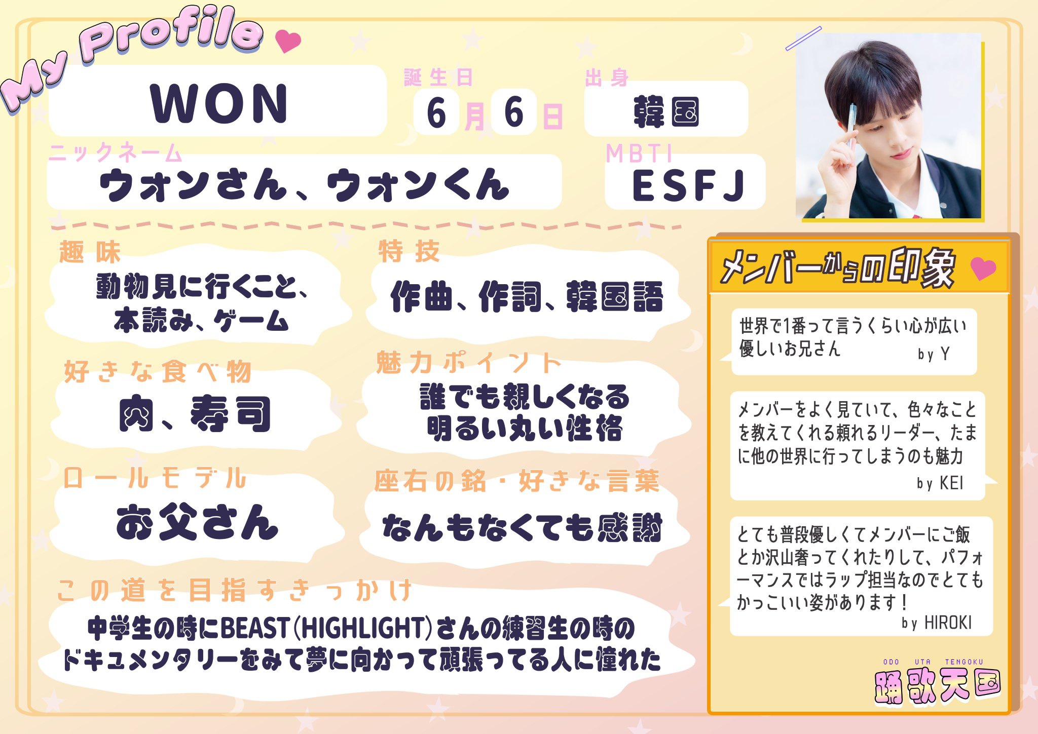 – Nickname(s): Won-san, Won-kun