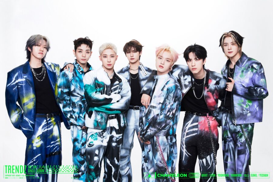 TRENDZ (트렌드지) is a 7-member boy group under Global H Media (they were previously under Interpark Music Plus, but later the company went out of business). The group consists of Havit, Leon, Yoonwoo, Hankook, ra.L, Eunil, and Yechan. They debuted on January 5, 2022, with their first mini album, BLUE SET CHAPTER 1. [TRACKS]. They made their Japanese debut on July 31, 2024.